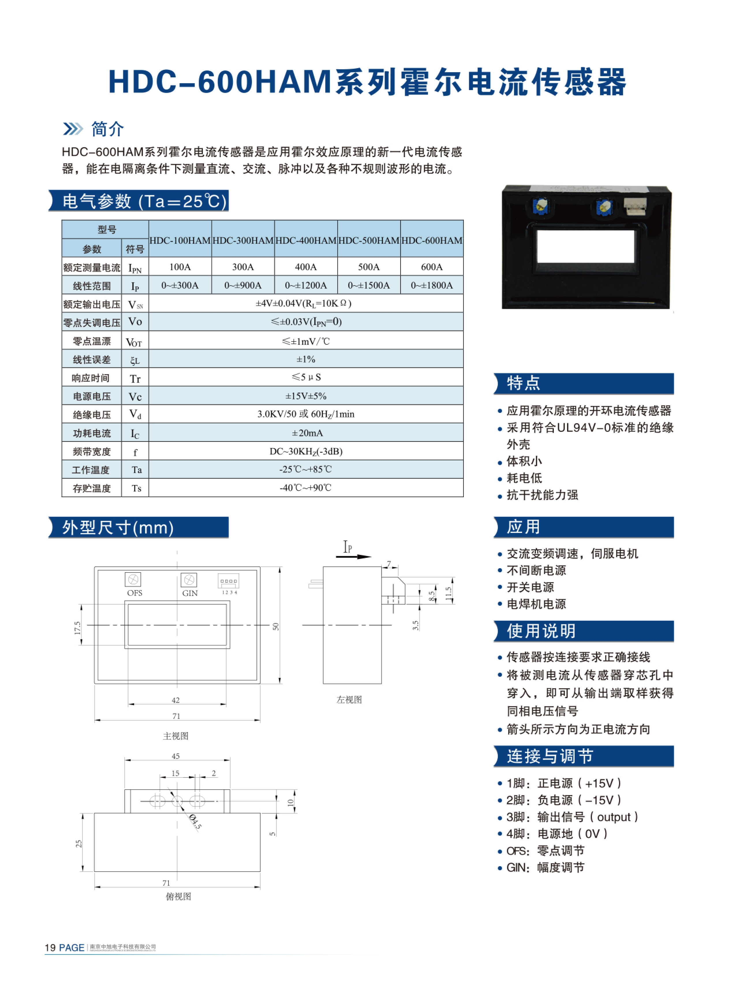 HDC-600HAM系列霍爾電流傳感器是應(yīng)用霍爾效應(yīng)原理的新一代電流傳感器,能在電隔離條件下測(cè)量直流、交流、脈沖以及各種不規(guī)則波形的電流。