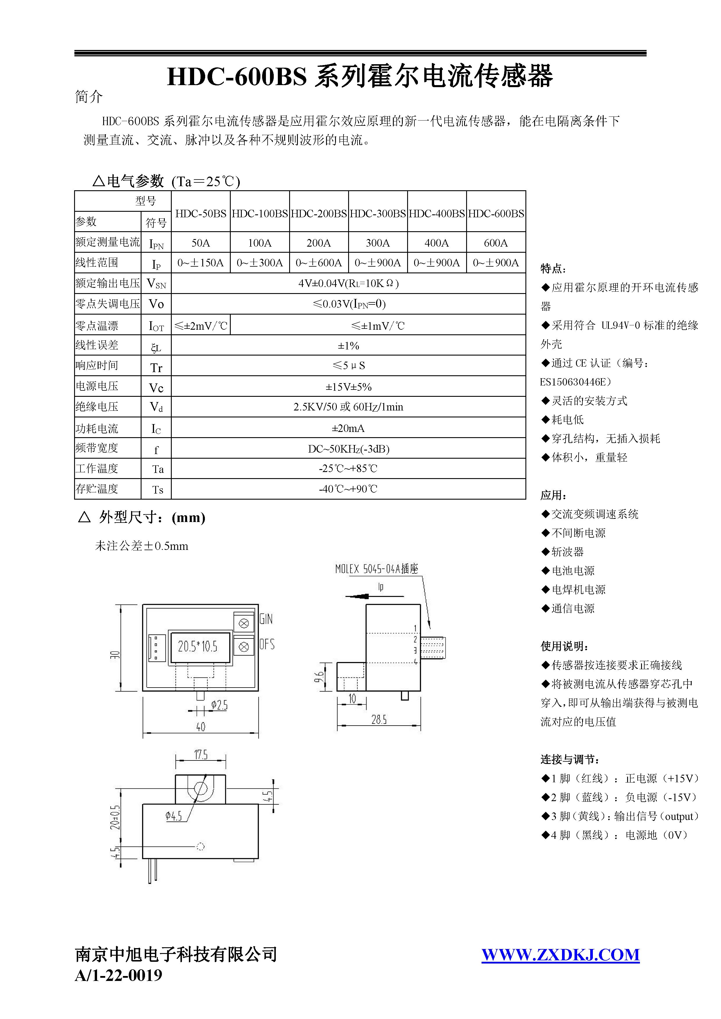 HDC-600BS系列霍爾電流傳感器是應(yīng)用霍爾效應(yīng)原理的新一代電流傳感器,能在電隔離條件下測(cè)量直流、交流、脈沖以及各種不規(guī)則波形的電流。