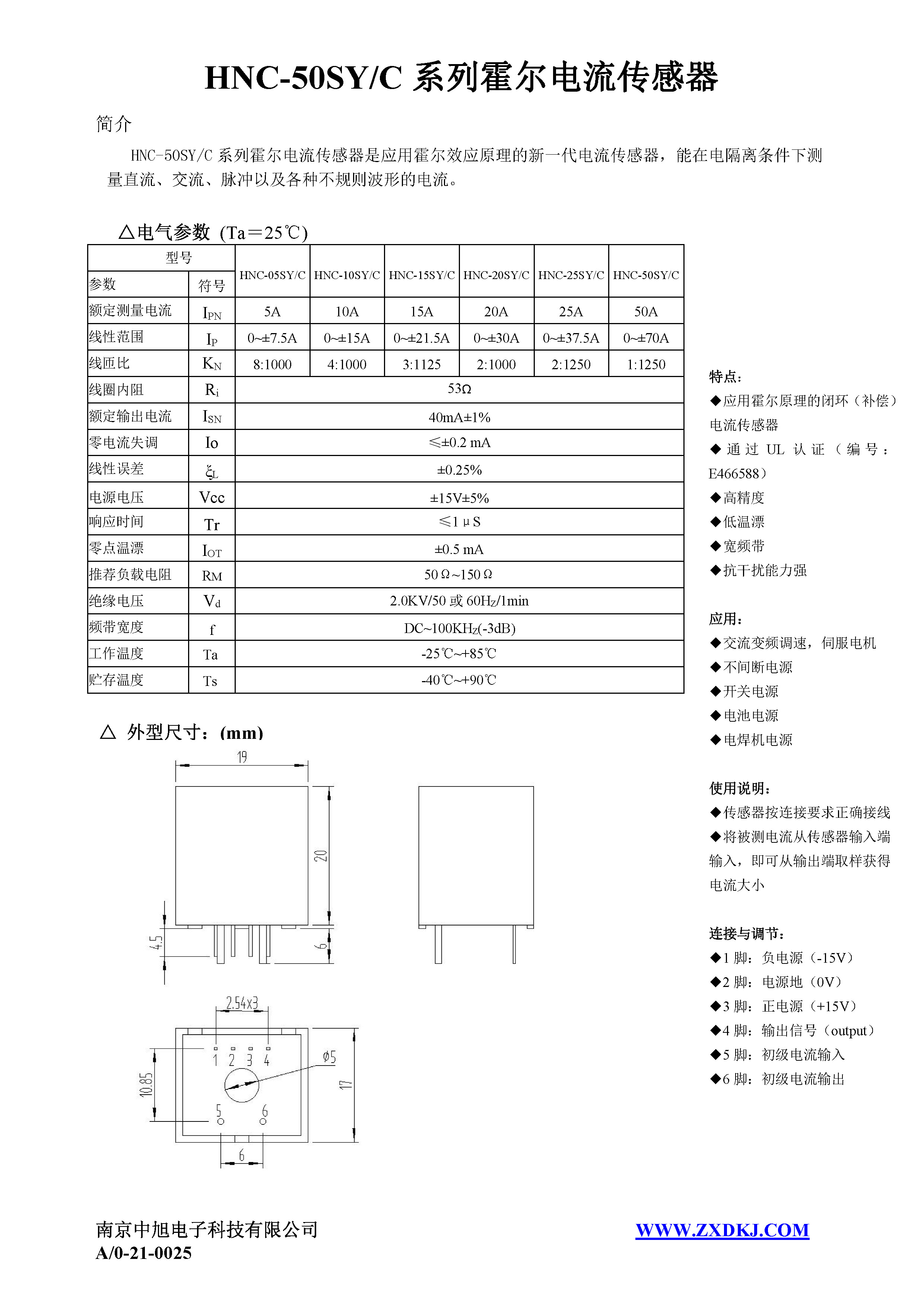 HNC-25SY/C系列霍爾電流傳感器是應用霍爾效應原理的新一代電流傳感器,能在電隔離條件下測量直流、交流、脈沖以及各種不規(guī)則波形的電流。